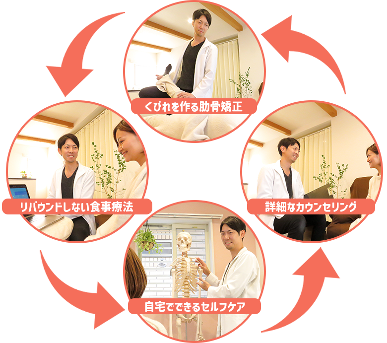 ダイエット整体を受けていただく期間で、リバウンドしない思考と習慣を身につけていただきます。
