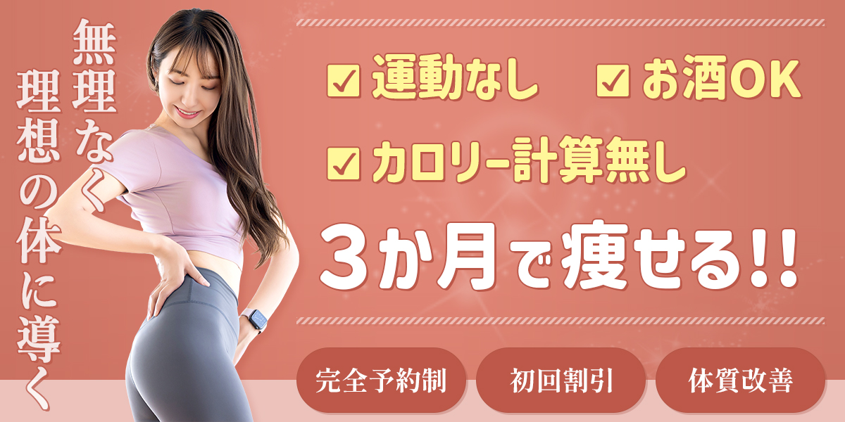 きつい運動や食事制限ができない方も、おしゃれなエステサロンには入りにくいという方も、どんな方でも、本気で痩せたい気持ちがあれば大丈夫です!
